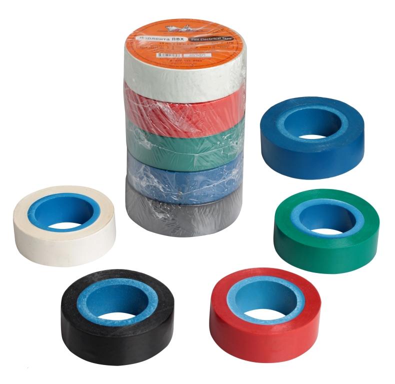 Изолента ПВХ, набор 5 шт.(син.,чёр.,кр.,зел., бел.), 19 мм*10 м (AIT-P-17K) |